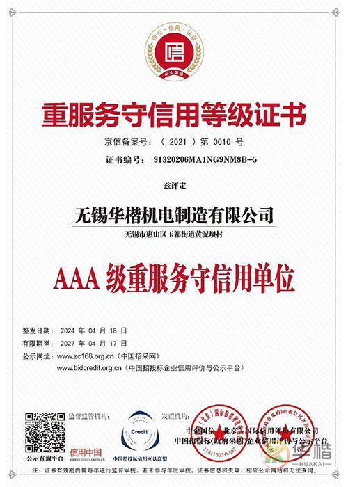 重服務(wù)守信用等級證書